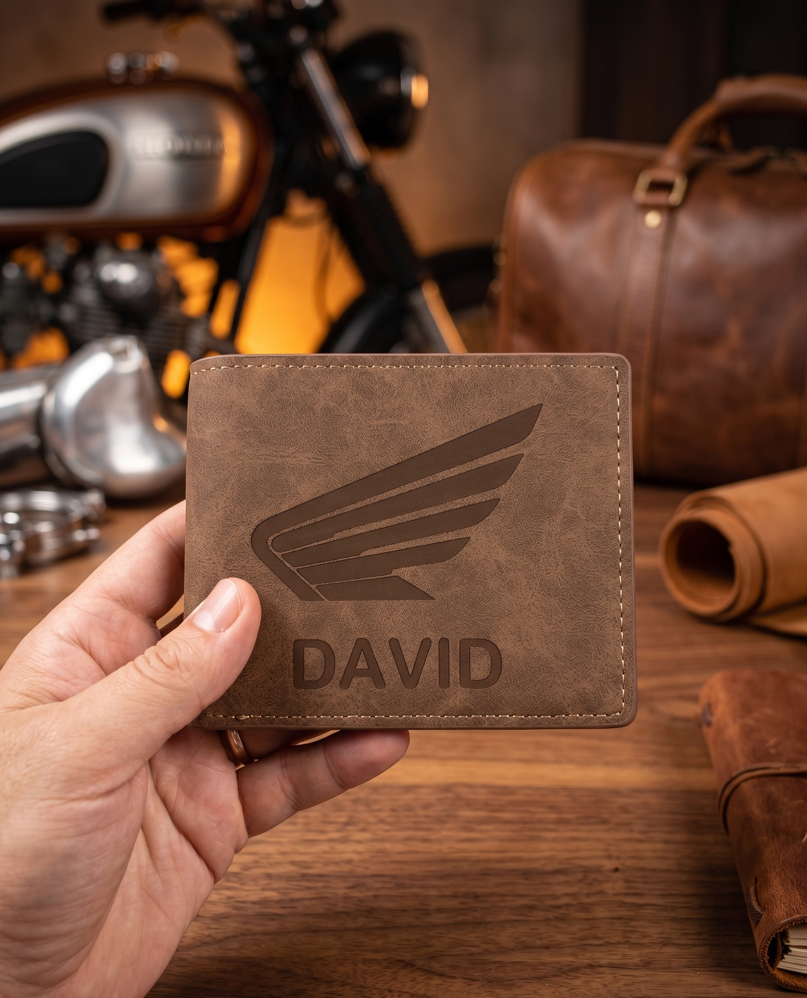 ¿Buscas un accesorio que aguante tu ritmo sin renunciar al diseño? Nuestra cartera para moteros en Yolascraft está fabricada en polipiel técnica con un acabado texturizado premium. Tiene ese aspecto clásico “gastado” que tanto nos gusta a los amantes de las motos, pero con la durabilidad de los materiales modernos.