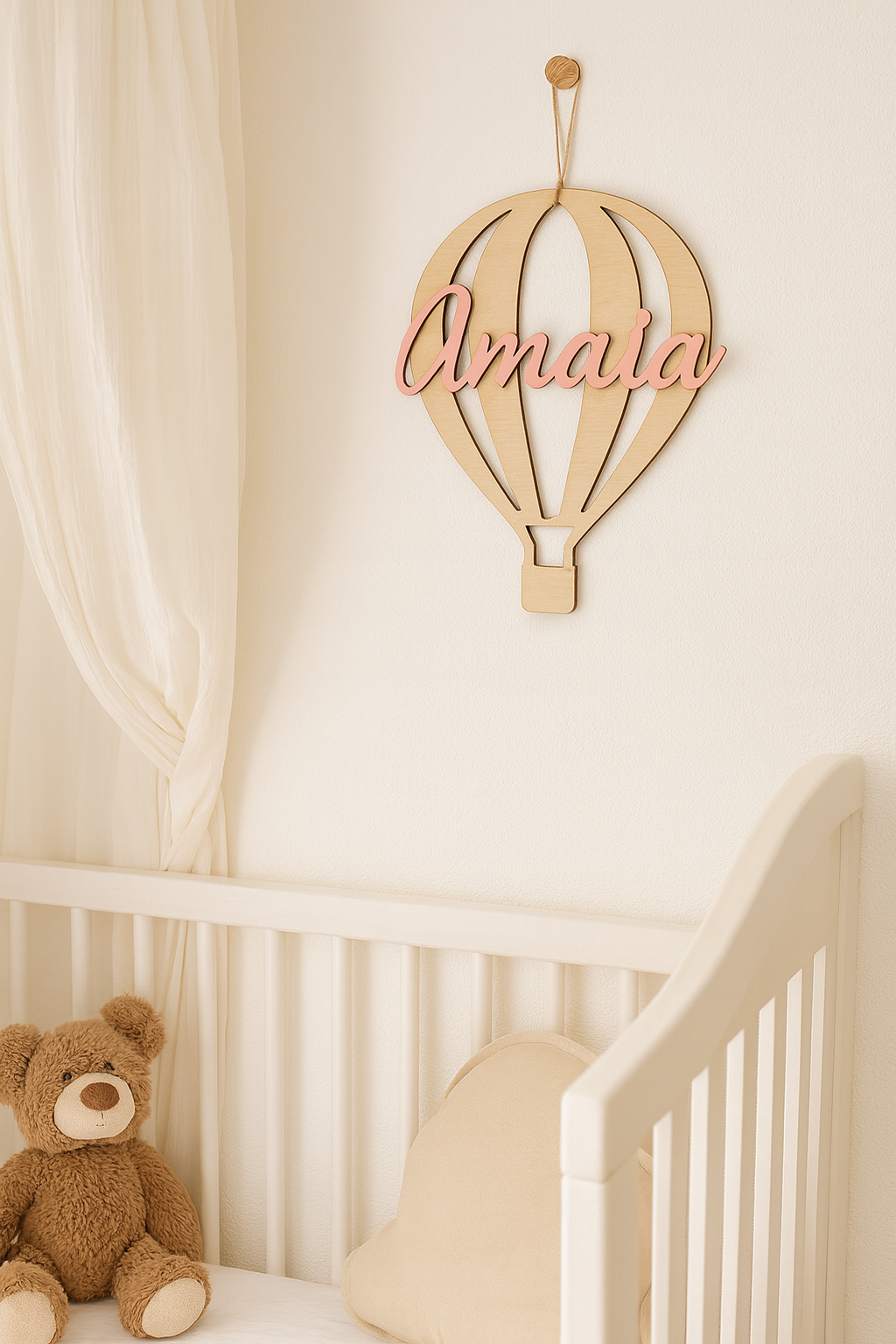 🎈 Globo de madera personalizado con nombre – Dulce y elegante detalle infantil
