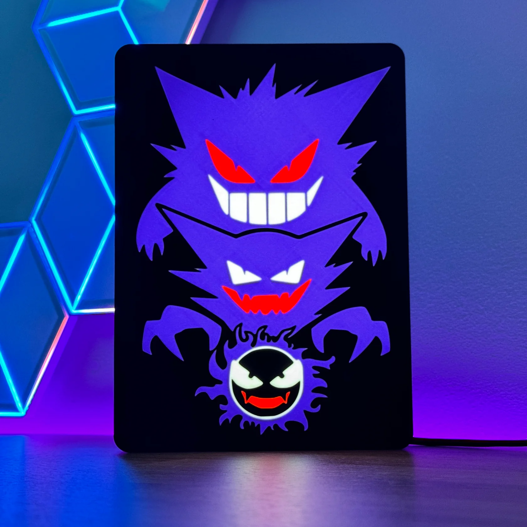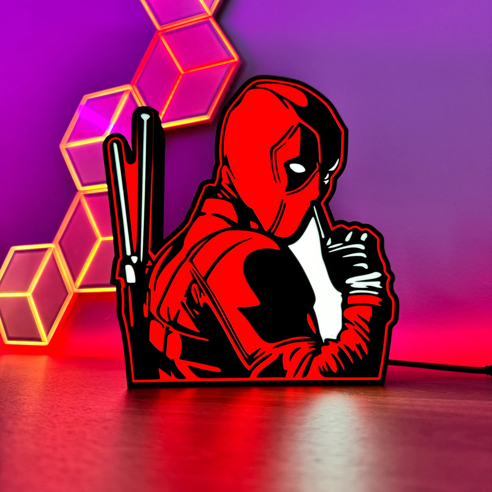 Lámpara  lightbox con iluminación LED, perfecta para dar un toque friki a tu escritorio o estantería. Fabricada en Filamento impresión 3D y base luminosa, con diseño original y colores súper vivos. Ideal como regalo para gamers, coleccionistas y amantes de la cultura pop. Envío gratuito incluido.