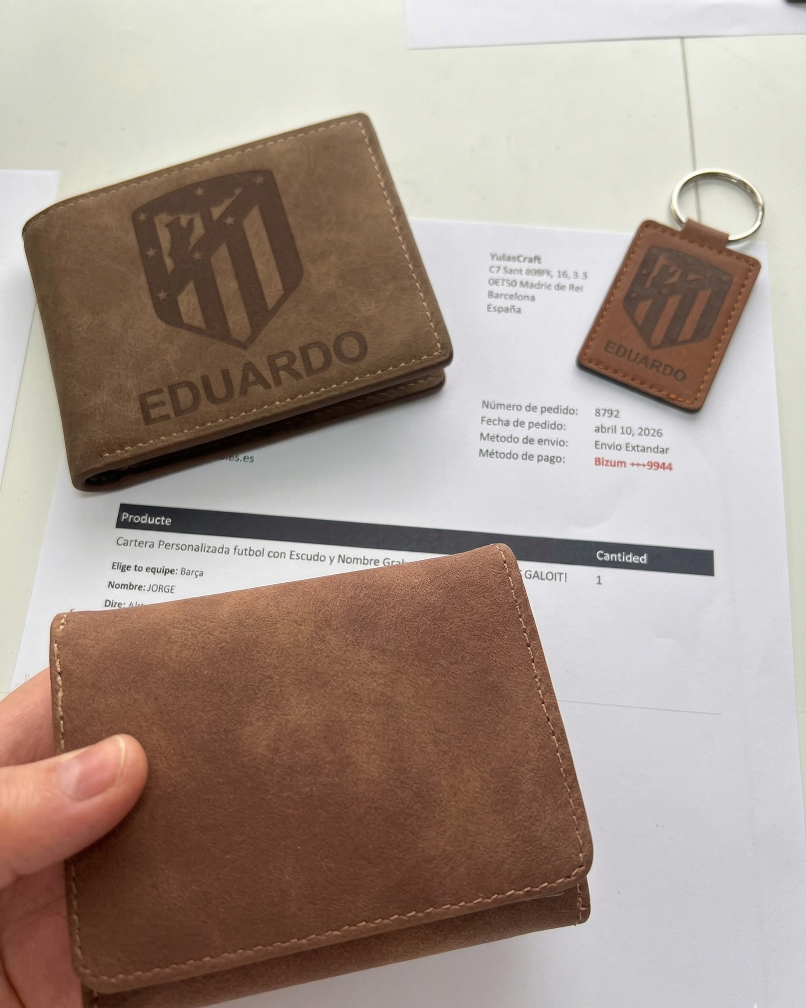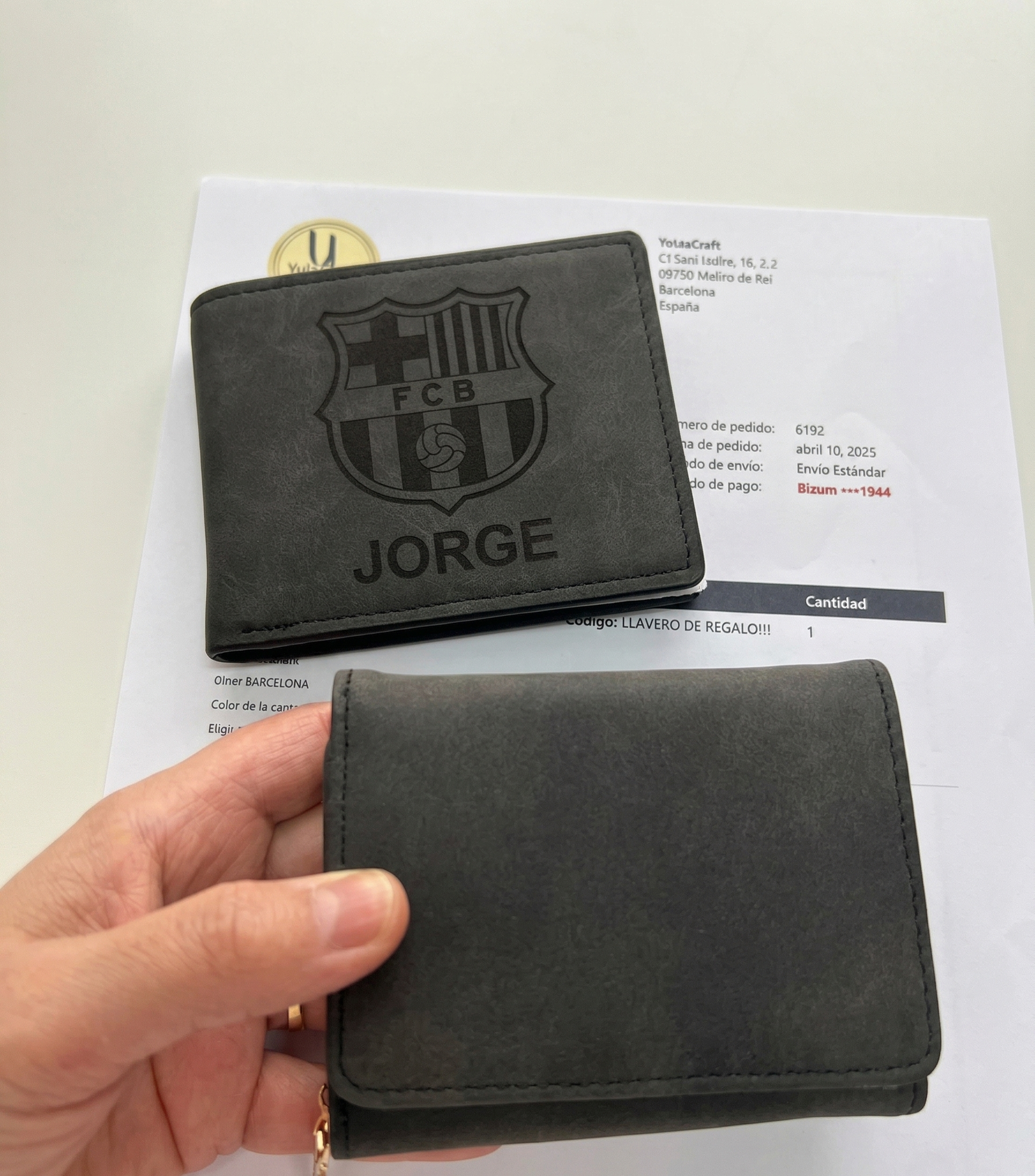Ya seas del Barça, del Madrid, o juegues en el equipo de tu pueblo, este monedero está hecho para ti. Olvídate de carteras enormes que no caben en el bolso; lleva tus tarjetas, monedas y tu escudo favorito siempre contigo.”