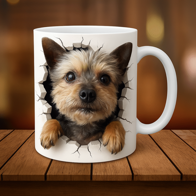 Imagina empezar el día con tu café y ver a tu mascota “rompiendo” la taza para saludarte 😺. Esta taza personalizada convierte la foto de tu mascota en un efecto 3D de pared rota súper realista, perfecto para amantes de los gatos y perros ,regalos únicos.