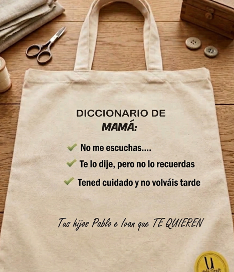 Todas las madres tienen ese “superpoder” de repetir las mismas frases una y otra vez. En Yola’s Craft hemos decidido rendirles homenaje con nuestra Tote Bag Diccionario de Mamá.